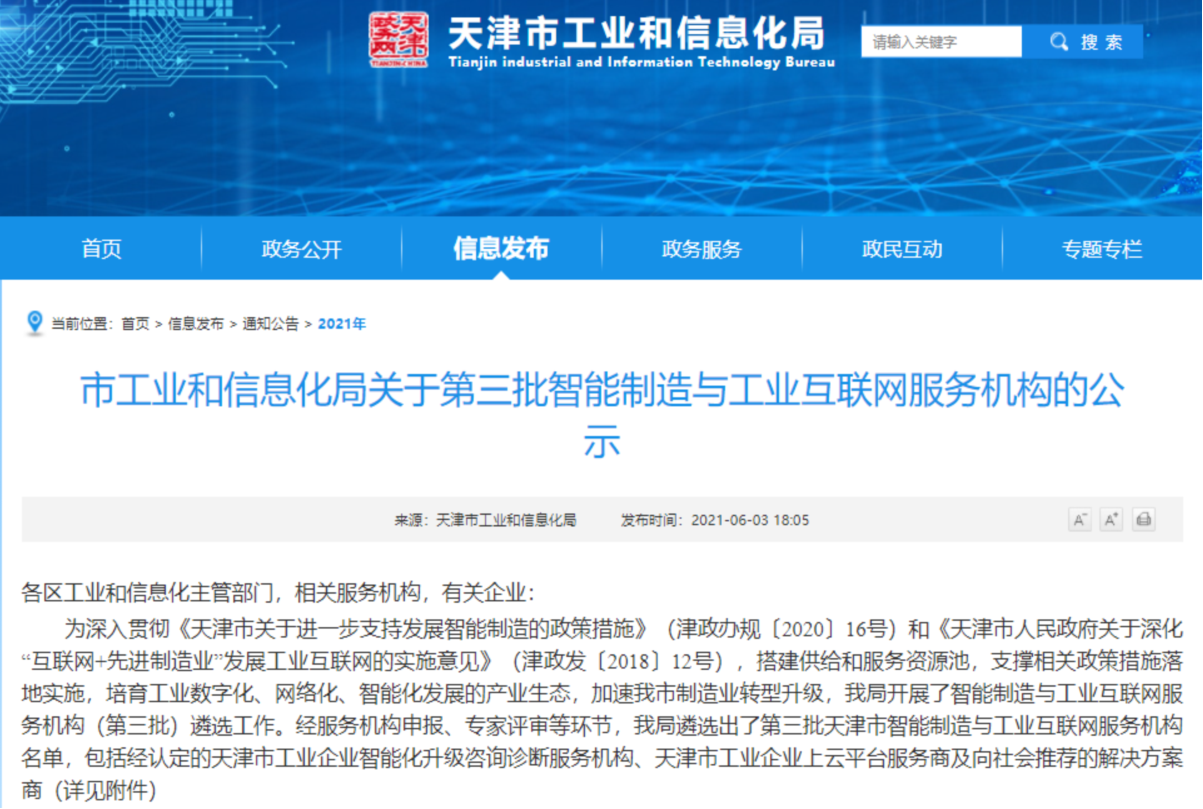 2021年天津市智能制造與工業(yè)互聯(lián)網(wǎng)服務(wù)機構(gòu)
